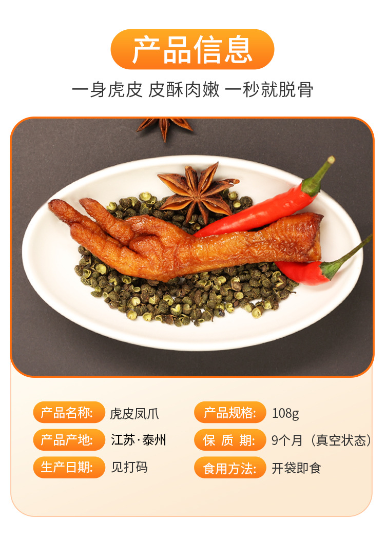 本网页所展示的有关【虎皮凤爪独立小包装香辣卤香味鸡爪子散装卤味鸡脚开袋即 食零食品_各地名优土特产_靖江金铎电子商务有限公司】的信息/图片/参数等由国民旅行网的会员【靖江金铎电子商务有限公司】提供,由国民旅行网会员【靖江金铎电子商务有限公司】自行对信息/图片/参数等的真实性、准确性和合法性负责,本平台(本网站)仅提供展示服务,请谨慎交易,因交易而产生的法律关系及法律纠纷由您自行协商解决,本平台(本网站)对此不承担任何责任。您在本网页可以浏览【虎皮凤爪独立小包装香辣卤香味鸡爪子散装卤味鸡脚开袋即 食零食品_各地名优土特产_靖江金铎电子商务有限公司】有关的信息/图片/价格等及提供【虎皮凤爪独立小包装香辣卤香味鸡爪子散装卤味鸡脚开袋即 食零食品_各地名优土特产_靖江金铎电子商务有限公司】的商家公司简介、联系方式等信息。