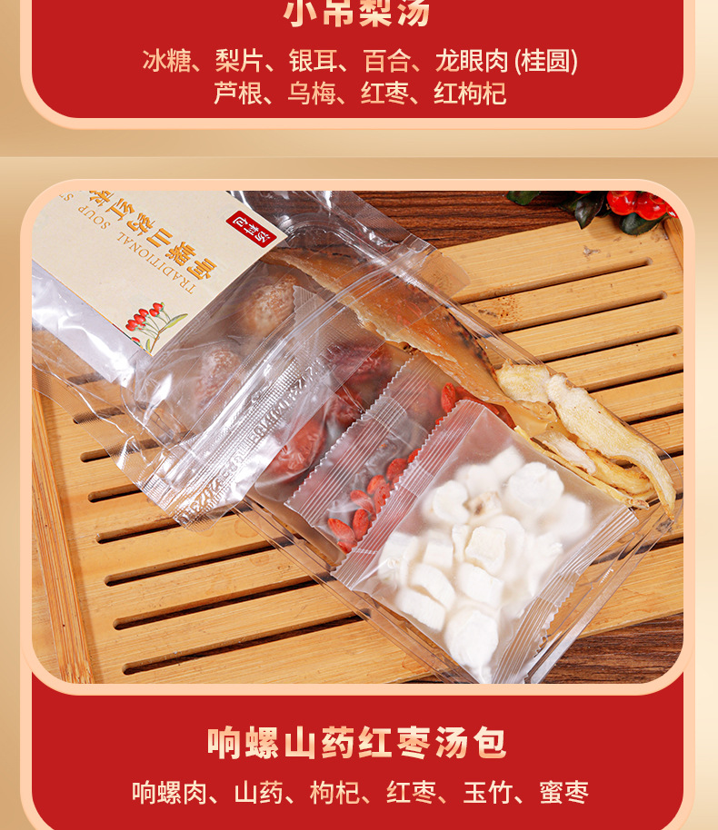 本网页所展示的有关【广东汤料包煲汤材料药膳五指毛桃汤包滋补菌汤包山药莲子汤干货_中医药膳_广州乐膳坊健康食品有限公司】的信息/图片/参数等由国民旅行网的会员【广州乐膳坊健康食品有限公司】提供,由国民旅行网会员【广州乐膳坊健康食品有限公司】自行对信息/图片/参数等的真实性、准确性和合法性负责,本平台(本网站)仅提供展示服务,请谨慎交易,因交易而产生的法律关系及法律纠纷由您自行协商解决,本平台(本网站)对此不承担任何责任。您在本网页可以浏览【广东汤料包煲汤材料药膳五指毛桃汤包滋补菌汤包山药莲子汤干货_中医药膳_广州乐膳坊健康食品有限公司】有关的信息/图片/价格等及提供【广东汤料包煲汤材料药膳五指毛桃汤包滋补菌汤包山药莲子汤干货_中医药膳_广州乐膳坊健康食品有限公司】的商家公司简介、联系方式等信息。
